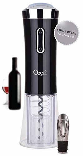 Ozeri Nouveaux II Electric Wine Opener in Black, with Foil Cutter, Wine Pourer and Stopper