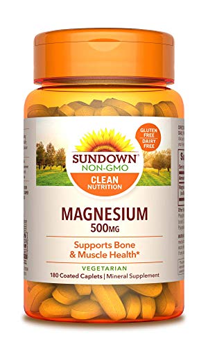 Sundown Magnesium, 500 mg (180 Coated Caplets) Mineral Supplement, Meets Daily Recommended Intake (Packaging May Vary)