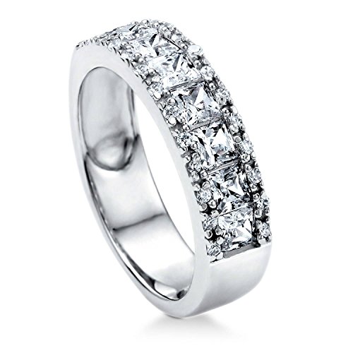 BERRICLE Rhodium Plated Sterling Silver Cubic Zirconia CZ Anniversary Half Eternity Band Ring Size 6