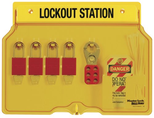 Master Lock Lockout Tagout Station, Covered Group Lockout Station, Includes 4 Aluminum Padlocks, 1482BP1106