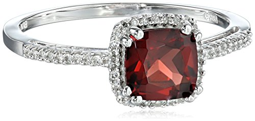 10K White Gold Garnet Cushion with Diamond Accent Ring, Size 7