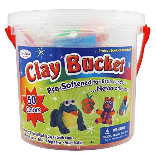 ArtSkills Non-Drying Clay Bucket, Arts and Crafts Supplies, Clay Art Set, 10 Project Ideas, 50 Sticks of Pre-Softened Modeling Clay, 100 Pieces Total (AMYS-131)
