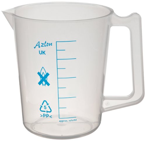 Azlon 526475-2000 Polypropylene Intermediate Form Graduated Beaker/Lab Pitcher with Handle Printed Graduations, 2000mL Capacity