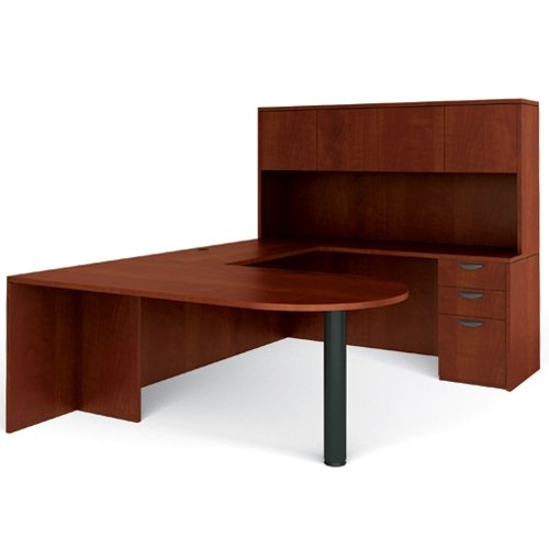 Offices To Go LAYOUTNADCL U-Shaped D Island Management Desk, Credenza, Overhead Hutch, File, 65-1/2"