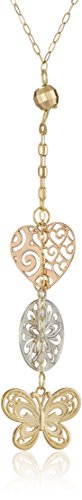 14k Gold Tri-Color Heart, Butterfly, and Disc Lariat Necklace, 18 inches