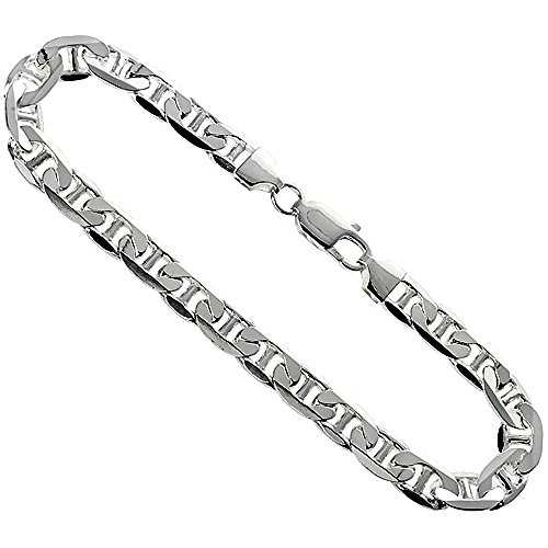 Sterling Silver Flat Mariner Link Chain Necklaces & Bracelets 7.2mm Nickel Free Italy, sizes 7-30 inch