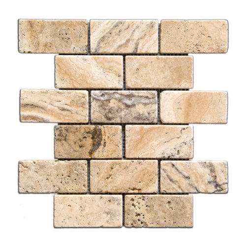 Philadelphia 2 X 4 Tumbled Travertine Brick Mosaic Tile - 6 X 6 Sample