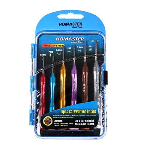 6pc Premium-Quality Micro Precision Screwdriver Set CRV Eyeglasses Watches Electronics Aluminum Handle - Lifetime Warranty by Homaster