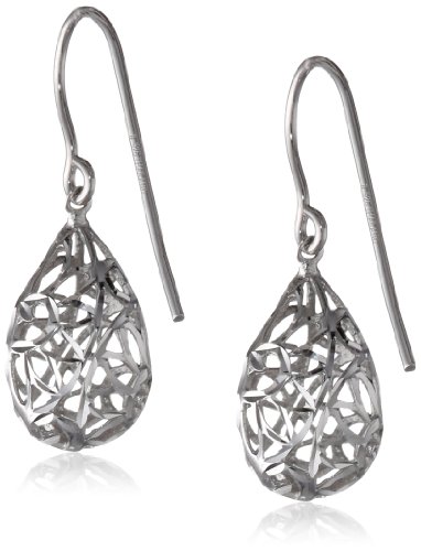 Sterling Silver Pear Dangle Earrings Filigree Rhodium plated