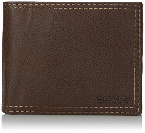 Levi's Men's Slim Bifold Wallet - Genuine Leather Casual Thin Slimfold with Extra Capacity and ID Window, Brown One sizee