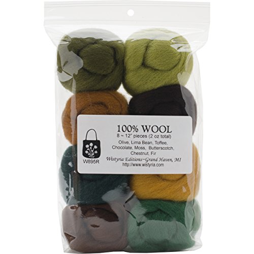 Wistyria Editions 0.25-Ounce Wool Roving, 12-Inch, Woodsy, 8-Pack