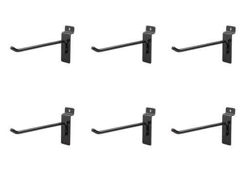Jifram Easy Living 01100690 Easy Wall Bag of Six 6-Inch 45 Degree Black Metal Slatwall Hooks with Stabalizer and Double Hook Clips