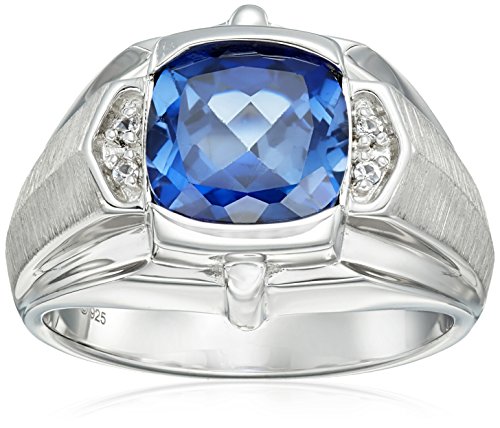 Men's Sterling Silver, Created Blue Sapphire, and Created White Sapphire Gents Ring, Size 10.5