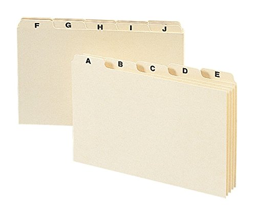 Smead Card Guide, Plain 1/5-Cut Tab (A-Z), 8"W x 5"H, Manila, 25 per Set (57076)