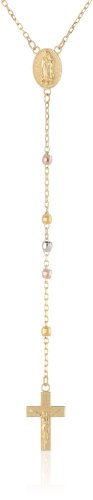 Gold-Plated Sterling Silver Tri-Colored Rosary Necklace, 16"