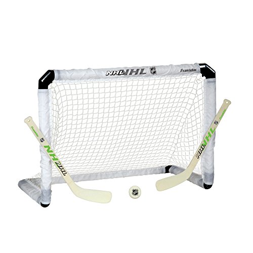 Franklin Sports Mini Hockey Goal Set - NHL - Glow in The Dark Goal, Sticks, and Ball