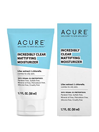 ACURE Incredibly Clear Mattifying Moisturizer | 100% Vegan | For Oily to Normal & Acne Prone Skin | Lilac Extract & Chlorella - Hydrates & Balances | 1.7 Fl Oz