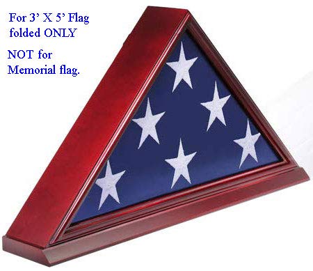 Flag Display Case Stand Shadow Box for Folded 3'X5' American Flag. (NOT for Memorial or Funeral Flag), Solid Wood