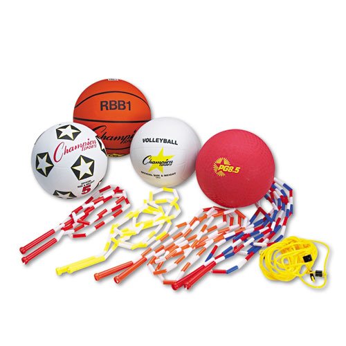 Physical Education Kit w/Seven Balls, 14 Jump Ropes, Assorted Colors