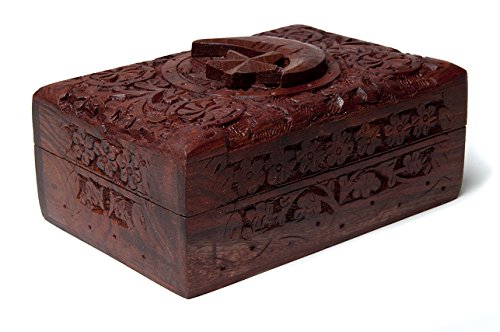 FindSomethingDifferent Rustic Handcarved Wooden Tarot Box Star & Moon