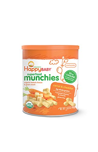 Happy Baby Organic Superfood Munchies Baked Cheese & Grain Snacks, Carrot & Cheddar, 1.63 Ounce (Pack of 6)