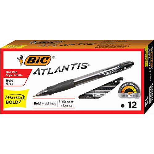 BIC VLGB11-Blk Velocity Bold Retractable Ball Pen, Bold Point (1.6mm), Black, 12-Count