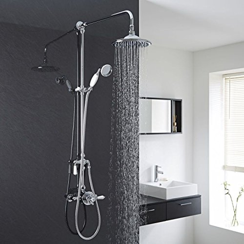 Hudson Reed Traditional Shower System With Exposed Piping, Old Style Lever Controls & Handshower In Chrome Finish