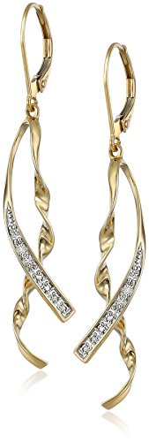 10k Yellow Gold Ribbon Diamond-Accent Earrings