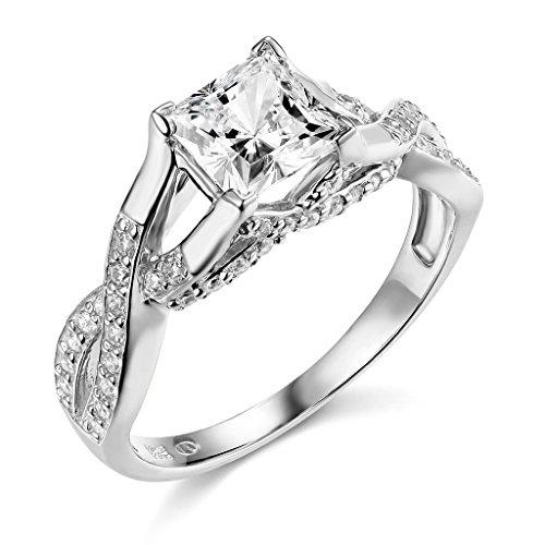 TWJC 14k Yellow OR White Gold Solid Princess Square Wedding Engagement Ring