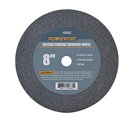 POWERTEC 15502 5/8" Arbor 36-Grit Silicon Carbide Grinding Wheel, 8" by 1"