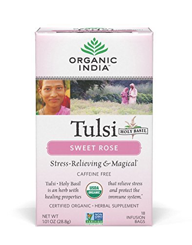 Organic India Tulsi Caffeine Free Tea, Sweet Rose, 18 Count