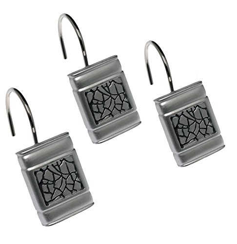 Popular Bath Shower Curtain Hooks, Sinatra Collection, Set of 12, Silver