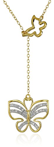 18k Yellow Gold Plated Sterling Silver Diamond Accent Butterfly Necklace, 17"