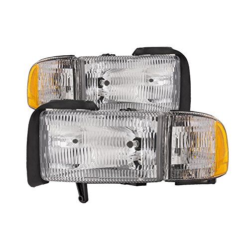 HEADLIGHTSDEPOT Chrome Housing Halogen Headlights Compatible with Dodge Ram W/O Sport 1500 2500 3500 Includes Left Driver and Right Passenger Side Headlamps