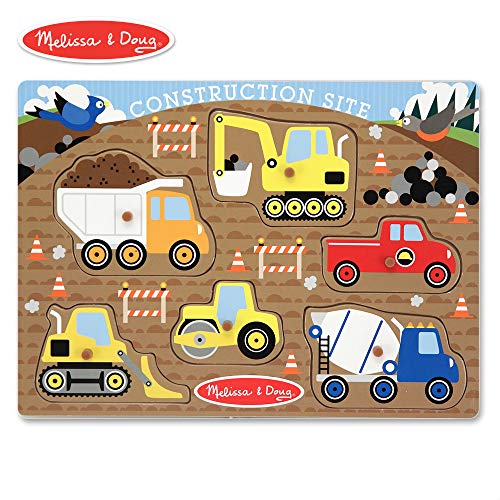 Melissa & Doug Construction Site Vehicles Wooden Peg Puzzle (6 pcs)