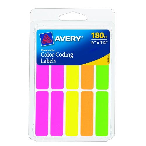 Avery Removable Color-Coding Labels, Removable Adhesive, 1/2" x 1-3/4", Assorted Neon Colors, 180 Labels (6724)