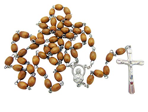Light Brown Wood Oval Bead Rosary, 20 1/2 Inches Long
