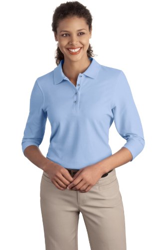Port Authority Women's Silk Touch 3/4 Sleeve Polo 4XL Light Blue