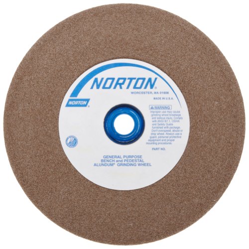 Norton Bench and Pedestal Abrasive Wheel, Type 01 Straight, Aluminum Oxide, 1" Arbor, 5" Diameter, 1/2" Thickness, Fine Grit (Pack of 1)
