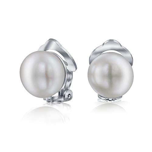 Bling Jewelry Sterling Silver Freshwater Pearl Clip on Earrings, 9-mm