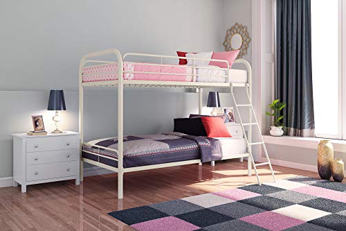 DHP Twin-Over-Twin Bunk Bed with Metal Frame and Ladder, Space-Saving Design, White