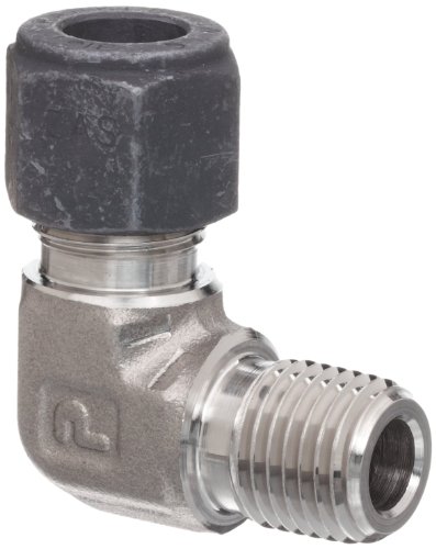 Parker CPI 6-4 CBZ-SS 316 Stainless Steel Compression Tube Fitting, 90 Degree Elbow, 3/8" Tube OD x 1/4" NPT Male