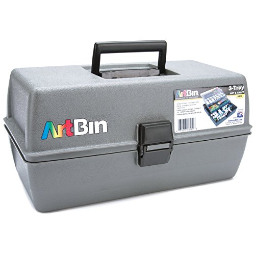ArtBin 8413 Upscale 3 Tray Box, 14.5 in. x 8 in. x 7 in, Slate Gray with Two Cantilevered Trays, Arts and Craft Supply Storage, Polypropylene Molded, Portable