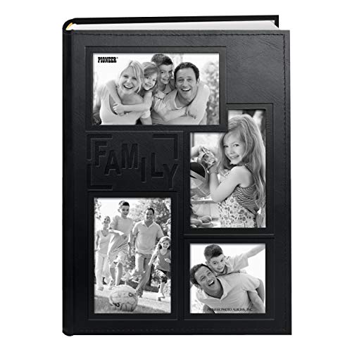 Pioneer Collage Frame Embossed Family Sewn Leatherette Cover 300 Pocket Photo Album, Black