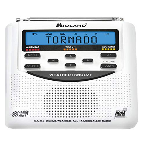 Midland - WR120, NOAA Emergency Weather Alert Radio - S.A.M.E. Localized Programming, Trilingual Display, 60+ Emergency Alerts, & Alarm Clock (WR120C - Clam Packaging)
