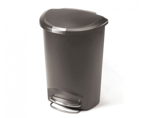 simplehuman 50 Liter / 13 Gallon Semi-Round Kitchen Step Trash Can, Grey Plastic With Secure Slide Lock