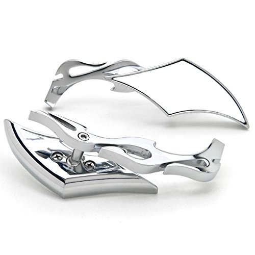 Krator SF-COMH5 Mirror (Chrome Twisted Flame Custom Rearview S For Harley Motorcycle Cruiser +Bolt)