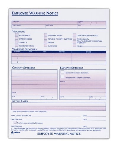 Adams Employee Warning Notice Form, 8.5 x 11 Inches, 2 Pads of 50 Forms, 100 Total forms, 1-Part Each (9060)