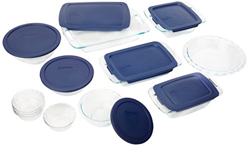Pyrex Easy Grab 19-Piece Glass Bakeware Set with Blue Lids
