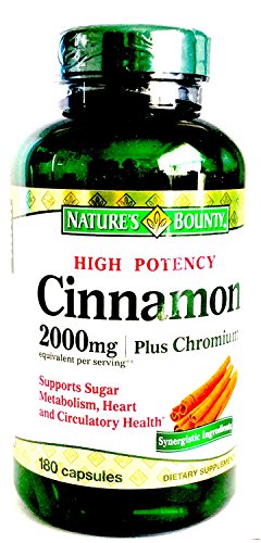 Nature's Bounty High Potency Cinnamon 2000 Plus Chromium 180 Capsules Per Bottle